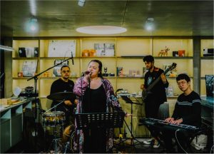 Di dekatnya, puisi berjudul “Kerudung” karya Fajar Ramadan yang pernah hadir dalam helatan Pertemuan Penyair Asia ikut menjadi bagian dari ruang. Puisi ini terinspirasi dari lagu “Atouna el Toufoule” yang dinyanyikan anak-anak Palestina yang turut menjadi korban genosida.