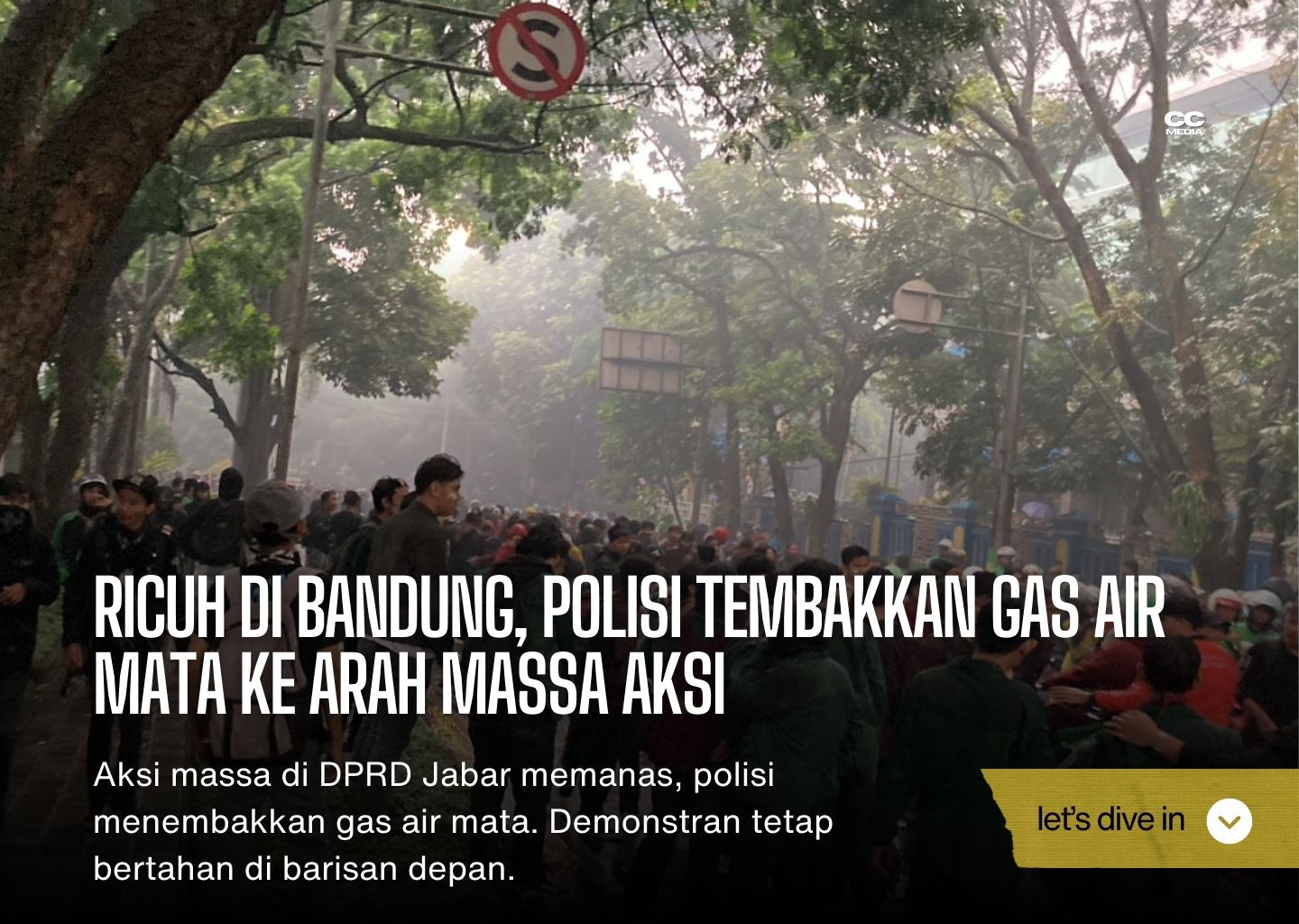 Aksi massa di depan Gedung DPRD Jawa Barat berubah ricuh setelah polisi menembakkan gas air mata ketika demonstran mulai menaiki pagar gedung. Hujan deras yang turun tidak meredakan ketegangan; massa tetap bertahan di jalan dengan yel-yel perlawanan, sementara aparat terus memperketat barisan.